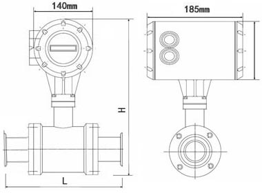 四、衛(wèi)生型電磁流量計外形尺寸圖:
