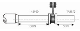 | 2.縮管的安裝: 對于大口徑小流量,縮管安裝,同時保證流量計的前直管段≥15D,后直管段≥5D | ![]() | |||||||||||