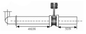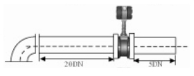 | 3.彎管的安裝: 如果流量計的前端有90°彎頭或T型接頭,要保證流量計的前直管段≥15D,后直管段≥5D | ![]() | |||||||||||
