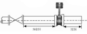 | 6.調節(jié)閥的安裝 如果流量計前后需要安裝調節(jié)閥,要保證流量計的前直管段≥25D,后直管段≥5D | ![]() | |||||||||||