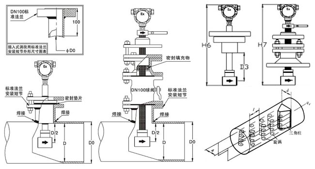 六、渦街流量計(jì)安裝示意圖:
