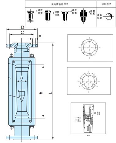 法蘭、浮子、導桿、支承板及螺栓等均為不銹鋼304(1Cr18Ni9Ti),型號為LZB-( )B。