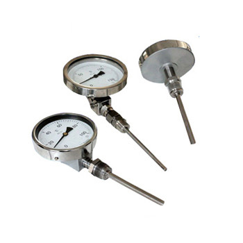 雙金屬溫度計是基于繞制成環(huán)性彎曲狀的雙金屬片組成。一端受熱膨脹時,帶動指針旋轉(zhuǎn),工作儀表便顯示出熱點勢所應(yīng)的溫度值。