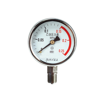 YY乙炔壓力表適用測量乙炔介質(zhì)的壓力。嚴禁接觸油脂類物質(zhì)。
